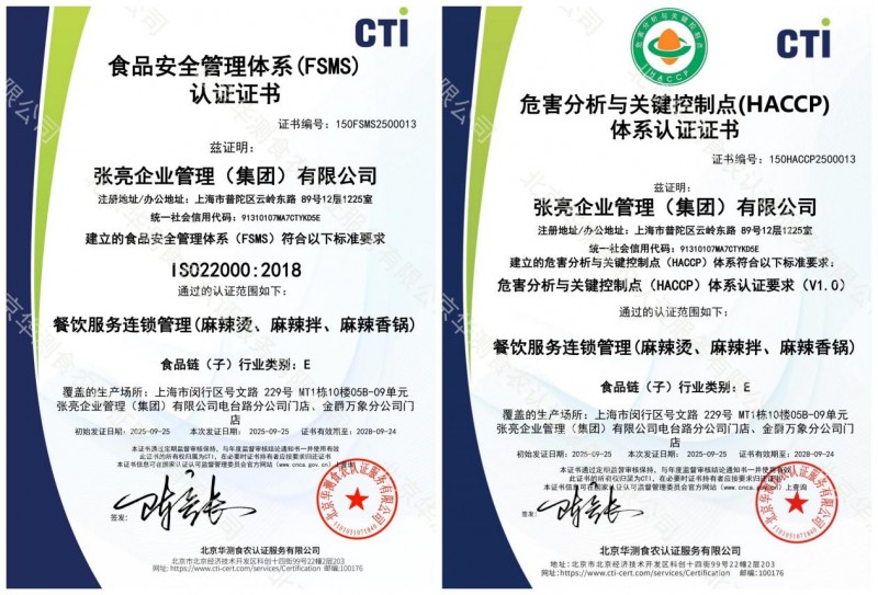 食安管理是全世界餐饮企业重点关注的问题。同时获得这两项认证,标志着张亮麻辣烫的门店已构建起科学、系统且符合国际标准的食品安全风险防控体系。这两项认证具有“国际公认、体系完整、标准严格”三大特点,张亮麻辣烫能够双双通过,充分体现其在食品安全管理上的扎实功底与体系能力。