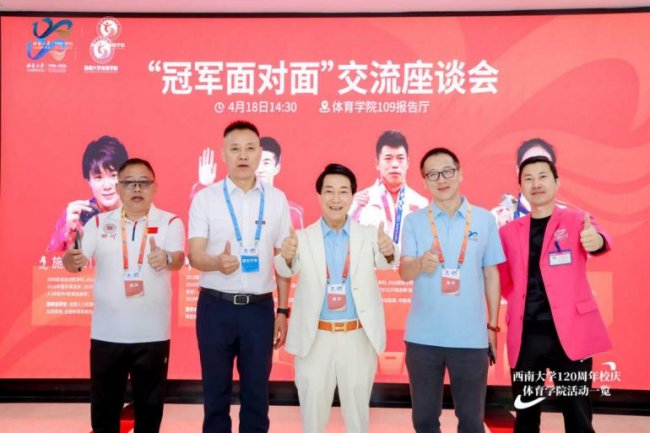 世界方便粉丝发明人、方便粉丝专家、企业科学家邹光友在校庆中遇见西南大学校友的世界冠军赵帅,邹光友分别向奥运冠军、世界冠军师弟师妹问好,相互鼓励。邹光友感恩母校体育学院院长黄晓灵教授培养、精心培育出多位世界冠军,为母校高质量发展体育事业争光添彩,特捐赠光友健康粉丝给体育学院,鼓励跆拳道世界冠军赵帅,跳水世界冠军施廷懋、举重世界冠军谌利军、举重世界冠军罗诗芳四位冠军,继续争夺世界冠军。