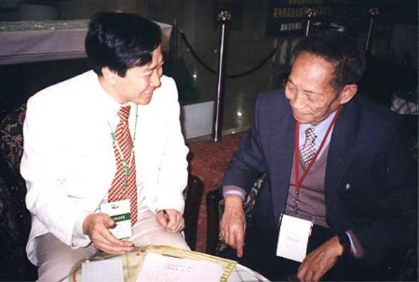 邹光友与袁隆平院士有着深厚的校友情谊,2001年11月7日,邹光友(左)在北京出席国际学术研讨会上与中国工程院院士、“杂交水稻之父”袁隆平(右)亲切交谈,袁隆平院士欣然赠言:“勤奋进取,与邹光友校友共勉。”